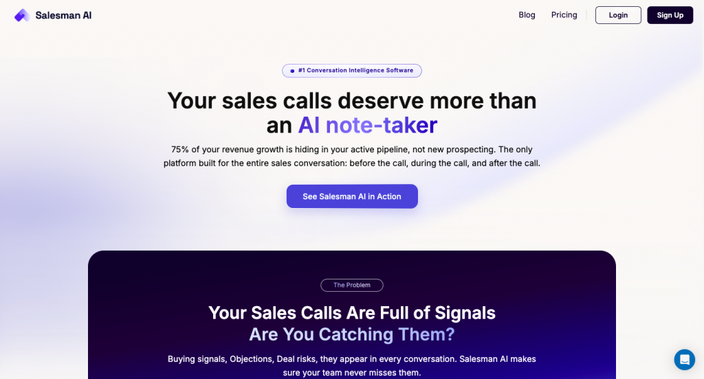 Salesman AI is an AI-native conversation intelligence platform built specifically around sales coaching workflows. Unlike broader platforms that added AI as a layer, Salesman AI is built from the ground up to analyze sales conversations and deliver actionable coaching feedback. The platform uses advanced AI to score calls against custom playbooks, identify objection-handling gaps, and provide reps with immediate post-call coaching recommendations — without waiting for a manager to review the recording. Its strength lies in automating the coaching loop: reps get consistent, objective feedback at scale that would otherwise require significant manager time.