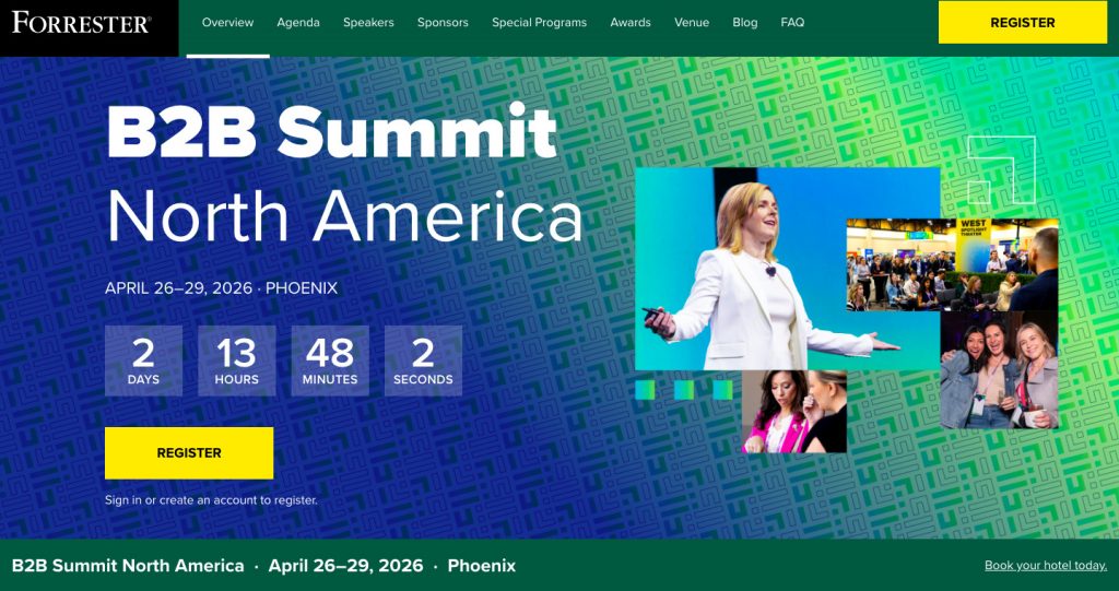 A leading conference for B2B sales, marketing, and product leaders focused on turning strategy into action. The event helps teams align, accelerate GTM performance, and build plans that deliver real, measurable outcomes, all powered by Forrester’s trusted research and expert guidance.